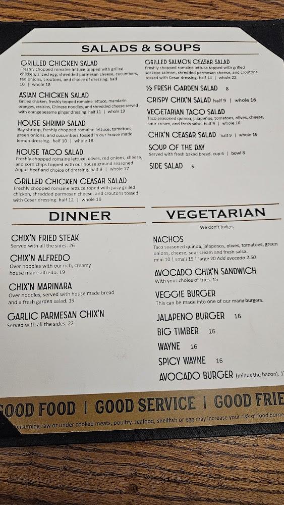 Welcome to The Pine Room, your go-to American restaurant and bar located in the heart of Burns, Oregon. With a diverse menu featuring local specialties and a selection of excellent cocktails, craft beers, and fine wines, there's something for everyone. Enjoy a relaxed atmosphere whether you're dining solo or with friends, and take advantage of our convenient takeout and delivery options. Our well-designed space ensures accessibility for all, with wheelchair-friendly seating and facilities. Join us for lunch, dinner, or late-night bites, and experience our commitment to great food and fast service in a cozy setting.